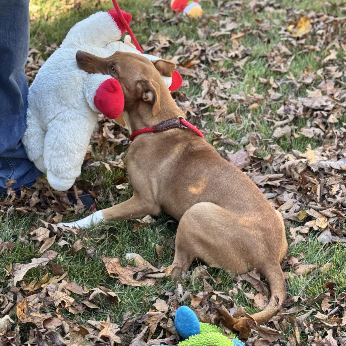 This is Blakely, an 8-month-old Vizsla mix with a playful heart! She presently weighs 35-40 pounds and will mature to 45-50, each pound filled with energy and delight! Great with other dogs, she would run around all day if she could. Playful, she loves toys like crazy, choosing to keep one close at all times! A joy? Yes! Just for you and your family? Yes! (posted 11/15/25, ME) Adoption Fee: $395.00-- covers microchip, worming, all vaccines, monthly heart worm preventative, monthly tick/flea preventative, spaying/neutering, health certificate, and complete medical records. Transport Fee: $160.00-- We consider the transport to be of great importance and, as such, take particular care of the dogs during the trip. We make every effort to arrive with healthy and minimally stressed dogs. **It is rare that we know with certainty the ages or mixes that make up our dogs, but we do our best to be as accurate as possible based upon our experience. **