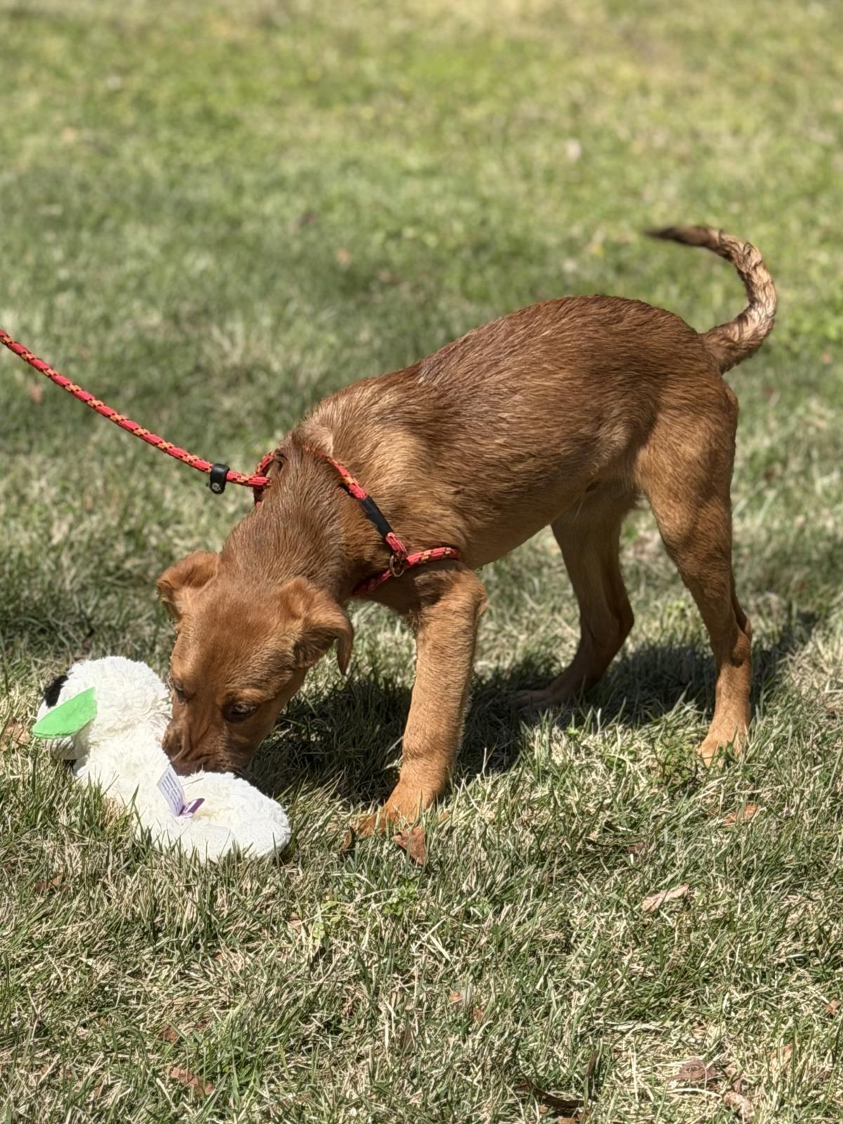 Ah, nuts! Yup! That’s what we said! These 4 month old nuts are wonderful and delicious little pups who will delight your every day! Their names are Walnut, Cashew, Pecan, Pistachio, Chestnut, and Almond! They form a fine litter of Lab mixes who are energetic and super sweet. They weigh 25 pounds and will probably grow to about 55 pounds or so. They’re very dog friendly but you should probably feed them separately; you know how little ones can be. They also love to play in water! Each of these babies has their own personalities, but every one is as adorable as the next. (posted 3/29/26 ME)