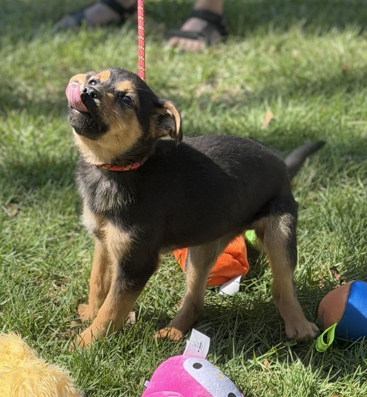 Such a playful litter of Shepherd mixes. 3 months old, they weigh 8-12 pounds but when mature will be around 55 pounds. Their foster can’t say enough great things about them. She says they’re very playful, vocal, loving, sweet, and dog friendly. And they adore their rope toys, too! And these “Irish” lads and lassies’ names are Shamrock, Dublin, Clover, Paddy, Lucky, and Emerald. Top o’ the mornin’ to you! (posted 3/30/31, ME)