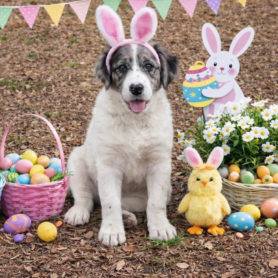 Oh, my goodness!! What a wonderful litter of six! Four months old, these Border Collie/Lab mixes weigh 25-30 pounds and will grow to between 60 and 70 pounds when they mature. They are good with other dogs, kids, and their foster’s cat! Just watch them as they frolic in the play yard, tumbling and chasing. Then see how they plop into puppy naps, waking up ready to race around again! Delightful! (posted 3/7/26, TN)