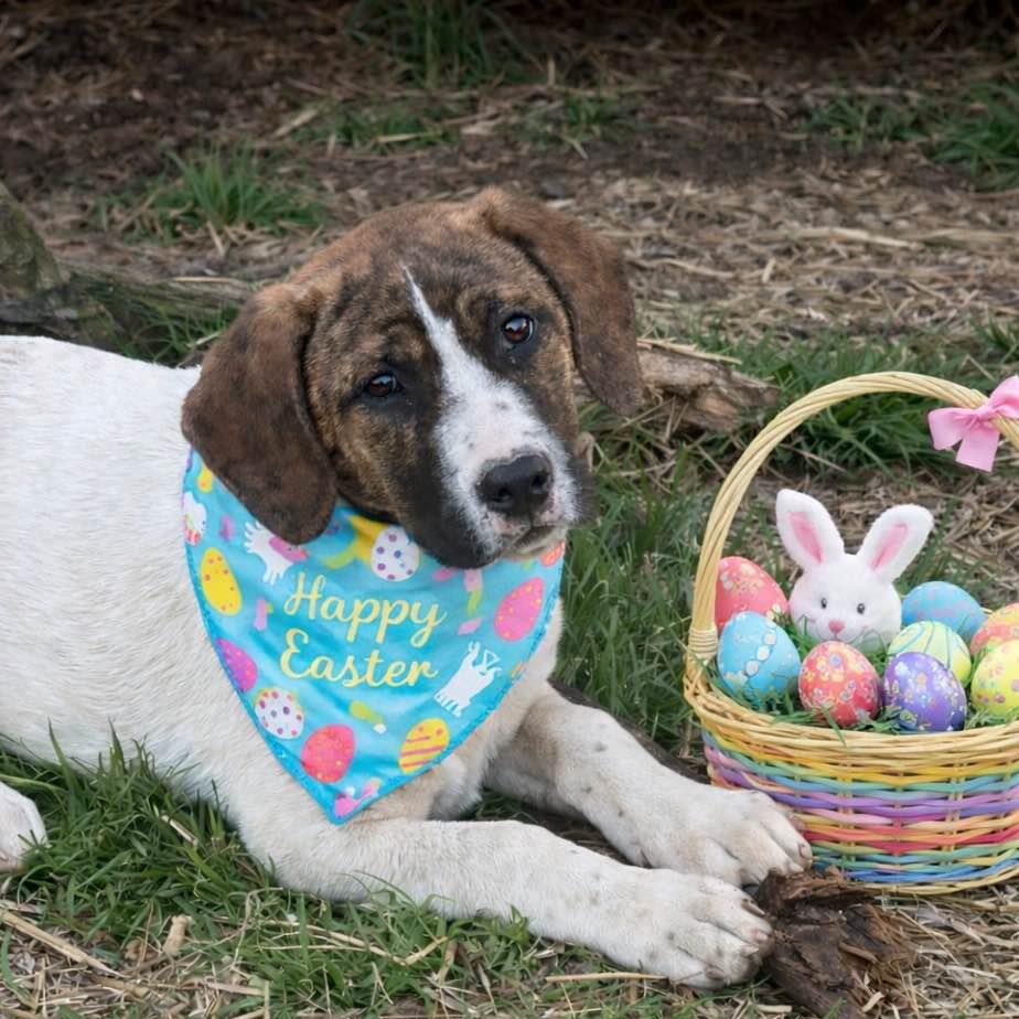 Oh, my goodness!! What a wonderful litter of six! Four months old, these Border Collie/Lab mixes weigh 25-30 pounds and will grow to between 60 and 70 pounds when they mature. They are good with other dogs, kids, and their foster’s cat! Just watch them as they frolic in the play yard, tumbling and chasing. Then see how they plop into puppy naps, waking up ready to race around again! Delightful! (posted 3/7/26, TN)