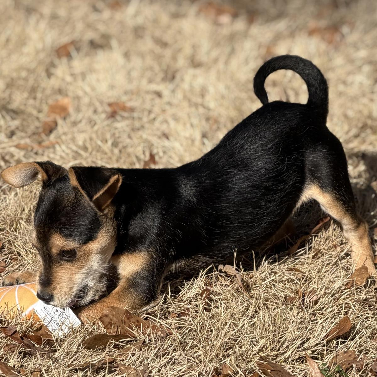 Meet brothers Flynn and Freddie, 3-month-old Terrier mixes (Mom is another of our dogs, Fi Fi ). These scruffy little boys weigh 5 to 8 puppy pounds and will mature to only 10 pounds or so which means that any child in the home should be over 10 years old or have experience with such small dogs. They may be small, but their personalities are big! They’re playful and dog friendly as well as energetic! In fact, given the chance (Please don’t) and you’ll find that they even climb fences! What a fine pair of little ones! (posted 2/13/26, ME)