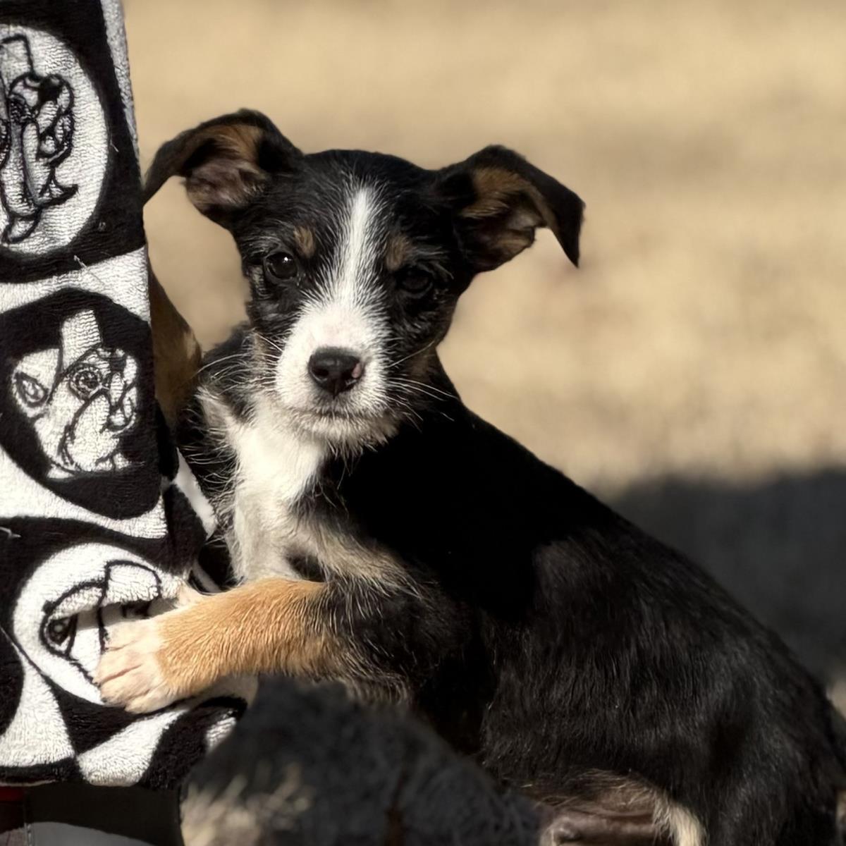 Meet brothers Flynn and Freddie, 3-month-old Terrier mixes (Mom is another of our dogs, Fi Fi ). These scruffy little boys weigh 5 to 8 puppy pounds and will mature to only 10 pounds or so which means that any child in the home should be over 10 years old or have experience with such small dogs. They may be small, but their personalities are big! They’re playful and dog friendly as well as energetic! In fact, given the chance (Please don’t) and you’ll find that they even climb fences! What a fine pair of little ones! (posted 2/13/26, ME)