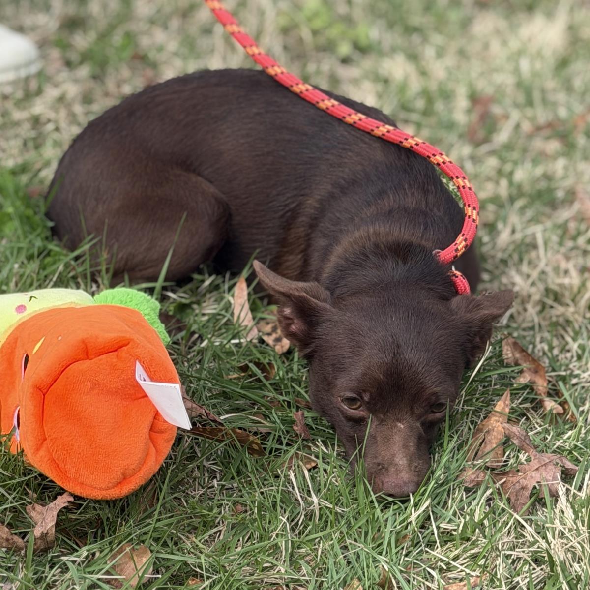 This is Hazel! Adorable, isn’t she? She’s a 6-month-old Chihuahua mix weighing only 11 pounds. Her foster describes her as “very calm, loving, sweet, playful, dog friendly. Oh, and she loves to be held!” Because she’s so small, we would prefer that she not go to a home with children under 10 who don’t always know their own strength when it comes to play. This girl is a real doll! (posted 3/16/26, ME)