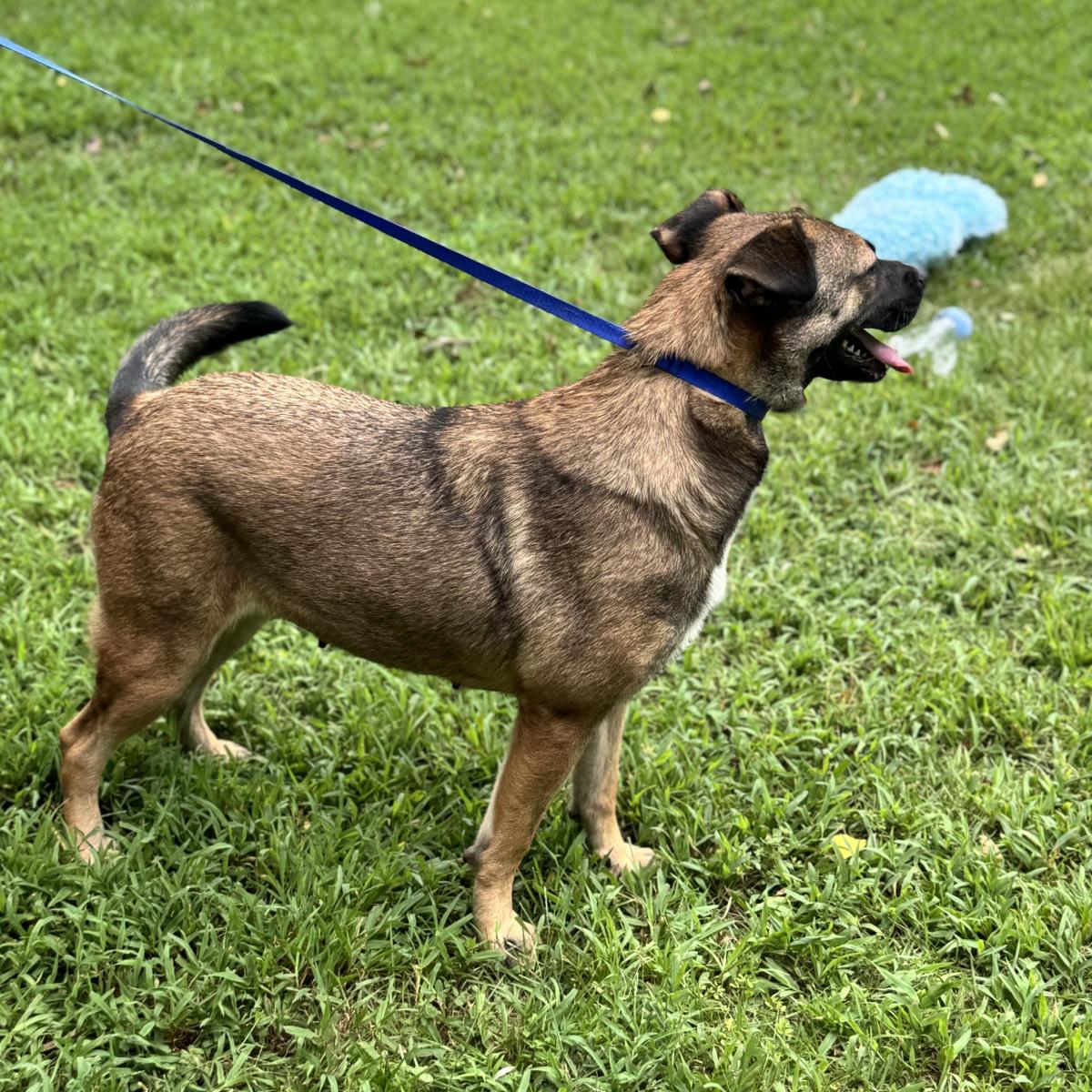 Her name is KIE, and it’s pronounced “Key” just like what you use to open a person’s heart. This is only right because our Kie opens the heart of everyone she meets, stranger or otherwise. A 3 year-old Shepherd mix, she presently weighs about 56 pounds and sports a coat of brown and black. She’s energetic and loves to play happily with her canine buddies, especially in her pool! Just watch as she romps with her friends around the yard. What a delight! (posted 8/7/25, ME) (Kie has been treated for heartworm.)