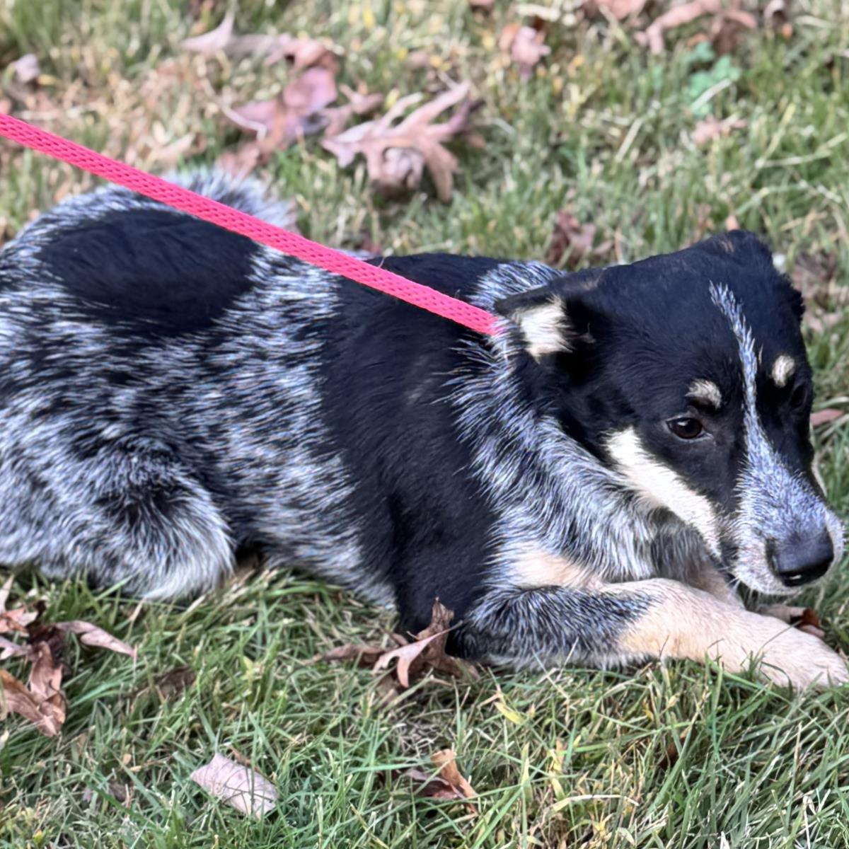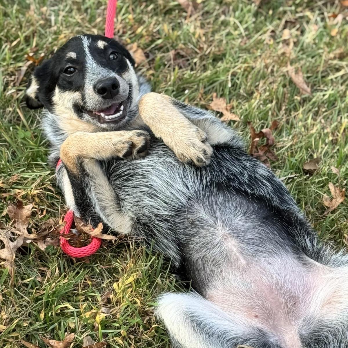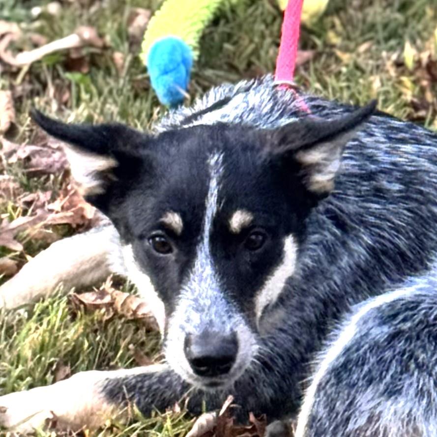 Meet delightful Millie, a mix of Heeler and Aussie Cattle Dog! Sweet and playful, crate-trained and dog friendly, now at 3 ½ months old she weighs 20 pounds, but she’ll mature to around 40 to 45 pounds. This is a lovely girl who is happy and energetic although she might be a bit shy at first. Don’t let that fool you though! She’ll be happily romping around and wagging her stubby little tail before you know it! (posted 11/15/25, ME)