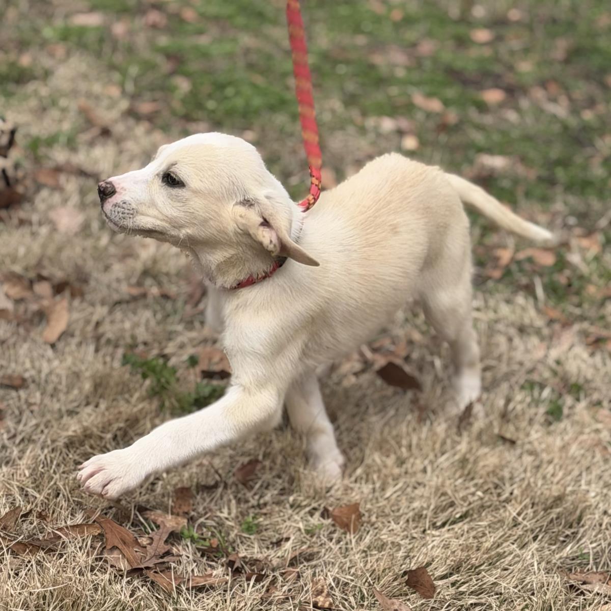 Pearl, Smokey and Stormy are delightful siblings with sparkling personalities. Lab mixes, they presently weigh 8-10 pounds and will mature to about 50. These three sibs are sweet, fun, playful and very energetic. They are very dog friendly and love to spend time racing around the play yard until they have to plop down into puppy naps before starting all over again. Terrific pups! (posted 3/7/26, ME)