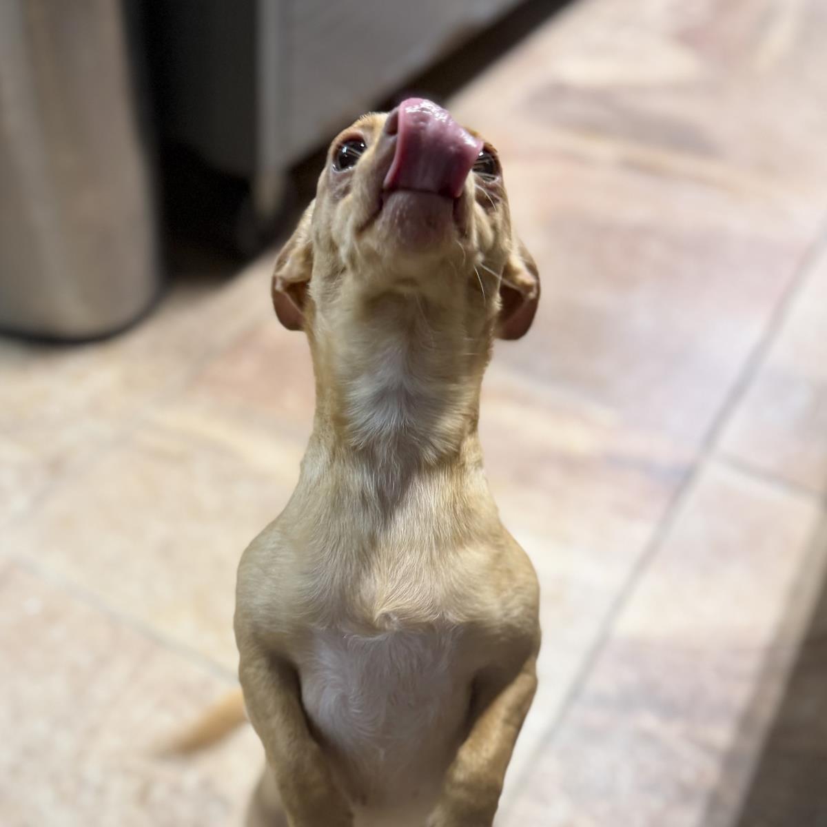 Oh, my! This girl is so precious that we couldn’t name her anything else! Can you blame us? Precious is a 1-year-old, 10-pound Chihuahua mix who would do best in a home without small children who don’t always know their own strength or with those who have had experience with such a petite dog. Super sweet and loving, she is dog friendly and loves to be held. She can be a bit shy at first but quickly finds those arms she wants to fall into! When she came to us she had a lump on her side which we had removed. It was non-cancerous, and she’s fine. As we said, we could call her nothing else but Precious, and it describes her well. (posted 2/5/26, ME)