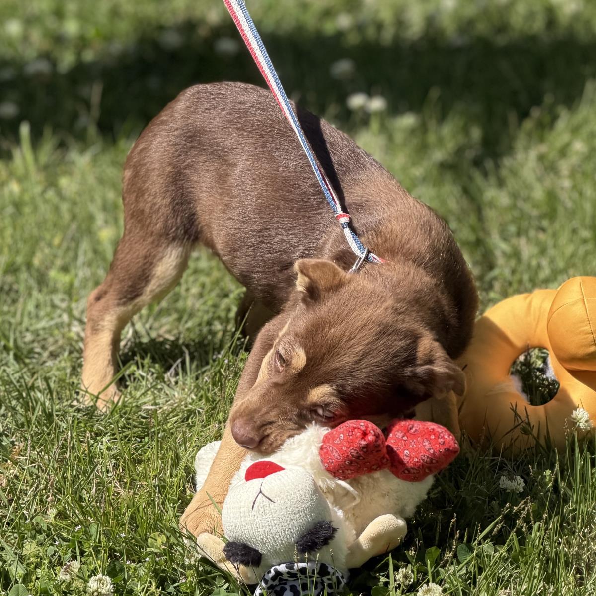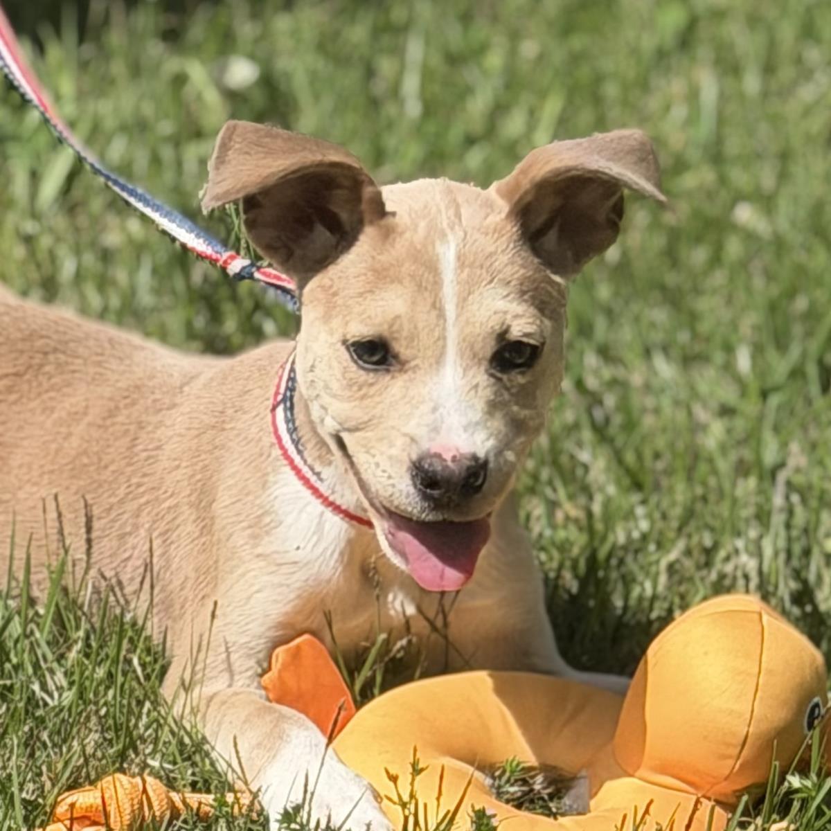 Gotta sweet tooth? Yes? Well, you’ll love this litter of 3-month-old Lab mixes! They presently weigh about 10 pounds and will mature to around 45 pounds. Their names are Crunch, Reese’s Cup, Snickers, and Milky Way and each is as sweet as the next. They’re playful, extremely loving, very energetic and dog friendly. They also love toys, balls, and food! Step right up to the candy counter and choose one! (posted 4/20/26, ME) Adoption Fee: $395.00-- covers microchip, worming, all vaccines, monthly heart worm preventative, monthly tick/flea preventative, spaying/neutering, health certificate, and complete medical records. Transport Fee: $160.00-- We consider the transport to be of great importance and, as such, take particular care of the dogs during the trip. We make every effort to arrive with healthy and minimally stressed dogs. **It is rare that we know with certainty the ages or mixes that make up our dogs, but we do our best to be as accurate as possible based upon our experience. **