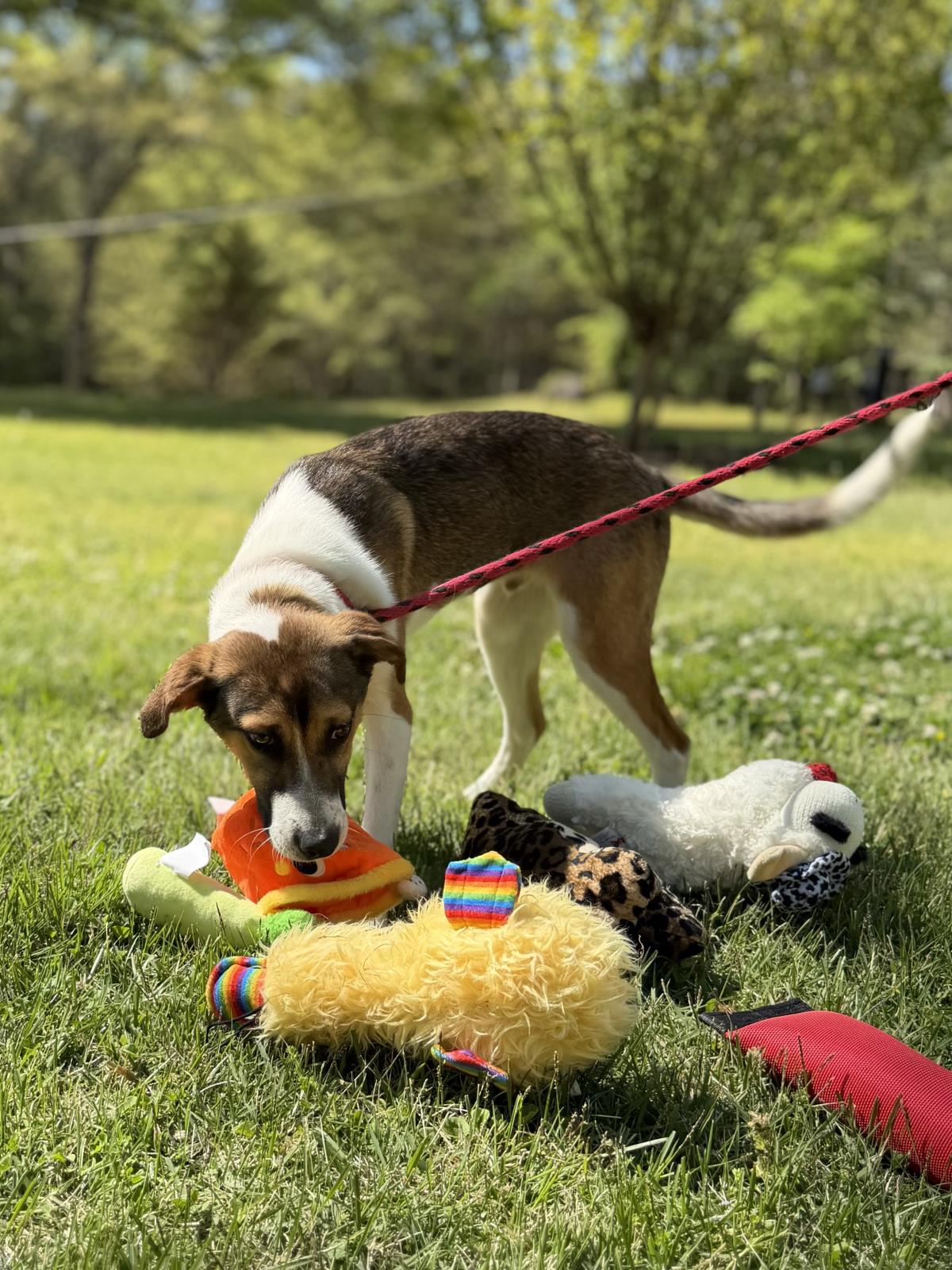 Such wonderful puppies these Aussie mixes are! With a mom like Piglet, how could they be anything else? Their names? Winnie, Lumpy, Eeyore, Robin, Roo, Pooh, Tigger, and Darby. They’re 7 months old, presently around 30 pounds and will mature to probably around 40 pounds. These babies are sweet and playful, social and smart. They love toys! They love each other, too! Great litter!!! (posted 12/26/25, ME)(revised agge and weight 4/11/26)