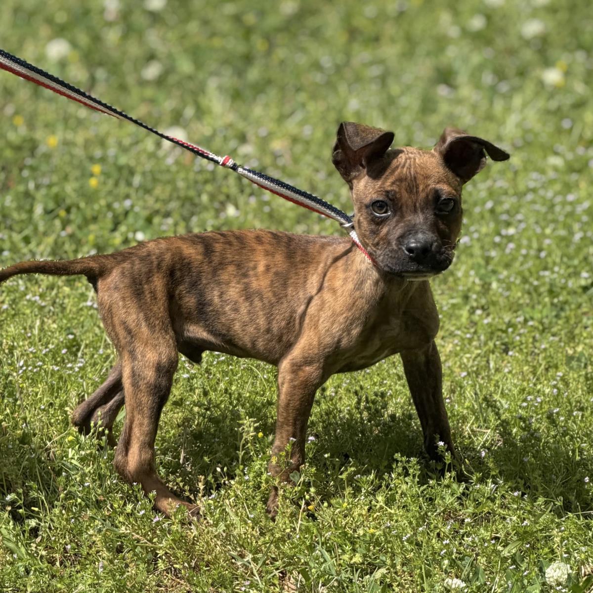 Who loves to be held? Eggie, Thumper, Sunday, and Hopper, that’s who! Three-month-old Boxer mixes, these four pups weigh 8-10 pounds now and will mature to around 40 pounds. They’re super sweet, playful, energetic, dog friendly, toy loving and very goofy! A delightful litter, these little ones spend their time rolling around and chasing each other having as much fun as they can! Terrific! (posted 4/16/26, ME) Adoption Fee: $395.00-- covers microchip, worming, all vaccines, monthly heart worm preventative, monthly tick/flea preventative, spaying/neutering, health certificate, and complete medical records. Transport Fee: $160.00-- We consider the transport to be of great importance and, as such, take particular care of the dogs during the trip. We make every effort to arrive with healthy and minimally stressed dogs. **It is rare that we know with certainty the ages or mixes that make up our dogs, but we do our best to be as accurate as possible based upon our experience. **