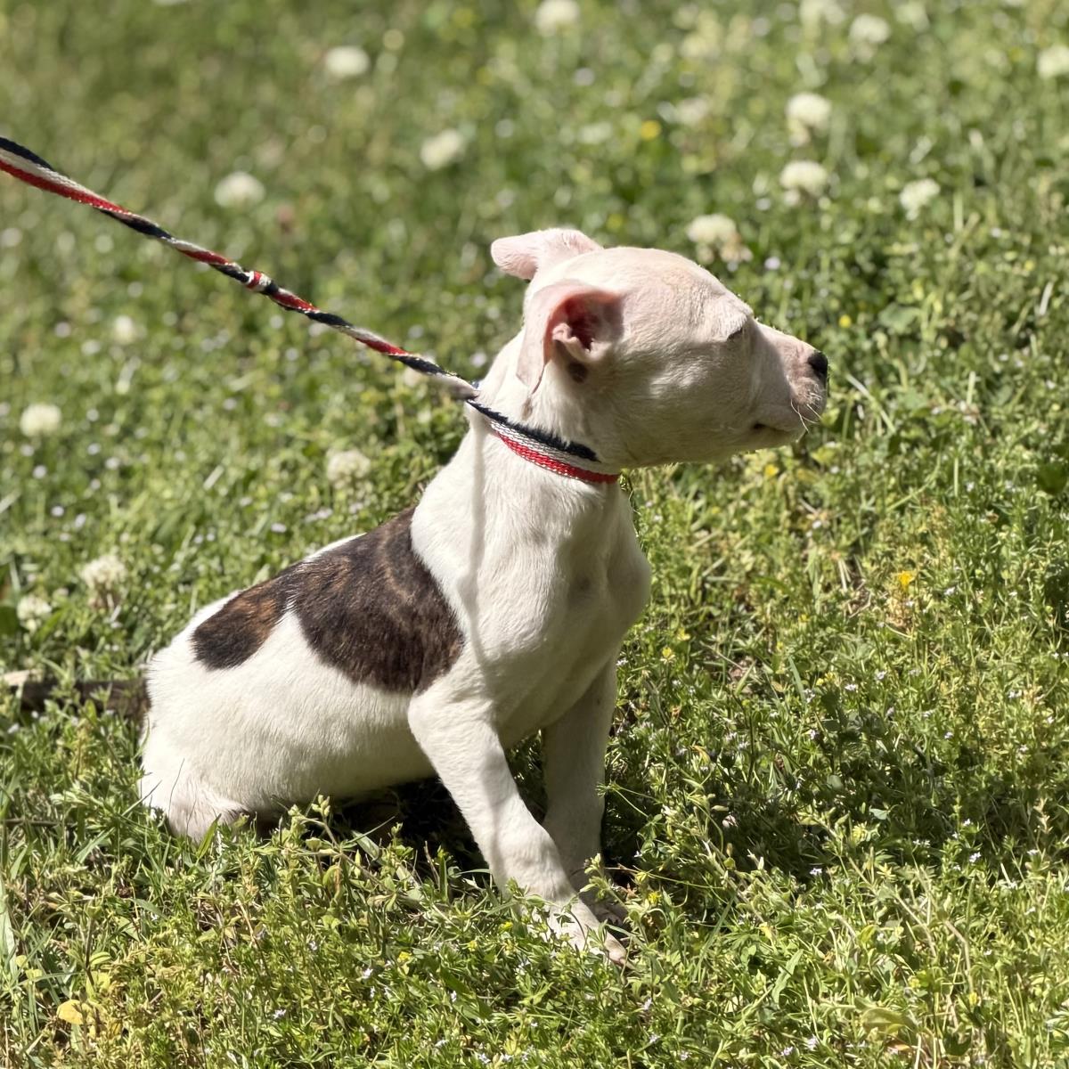 Who loves to be held? Eggie, Thumper, Sunday, and Hopper, that’s who! Three-month-old Boxer mixes, these four pups weigh 8-10 pounds now and will mature to around 40 pounds. They’re super sweet, playful, energetic, dog friendly, toy loving and very goofy! A delightful litter, these little ones spend their time rolling around and chasing each other having as much fun as they can! Terrific! (posted 4/16/26, ME) Adoption Fee: $395.00-- covers microchip, worming, all vaccines, monthly heart worm preventative, monthly tick/flea preventative, spaying/neutering, health certificate, and complete medical records. Transport Fee: $160.00-- We consider the transport to be of great importance and, as such, take particular care of the dogs during the trip. We make every effort to arrive with healthy and minimally stressed dogs. **It is rare that we know with certainty the ages or mixes that make up our dogs, but we do our best to be as accurate as possible based upon our experience. **