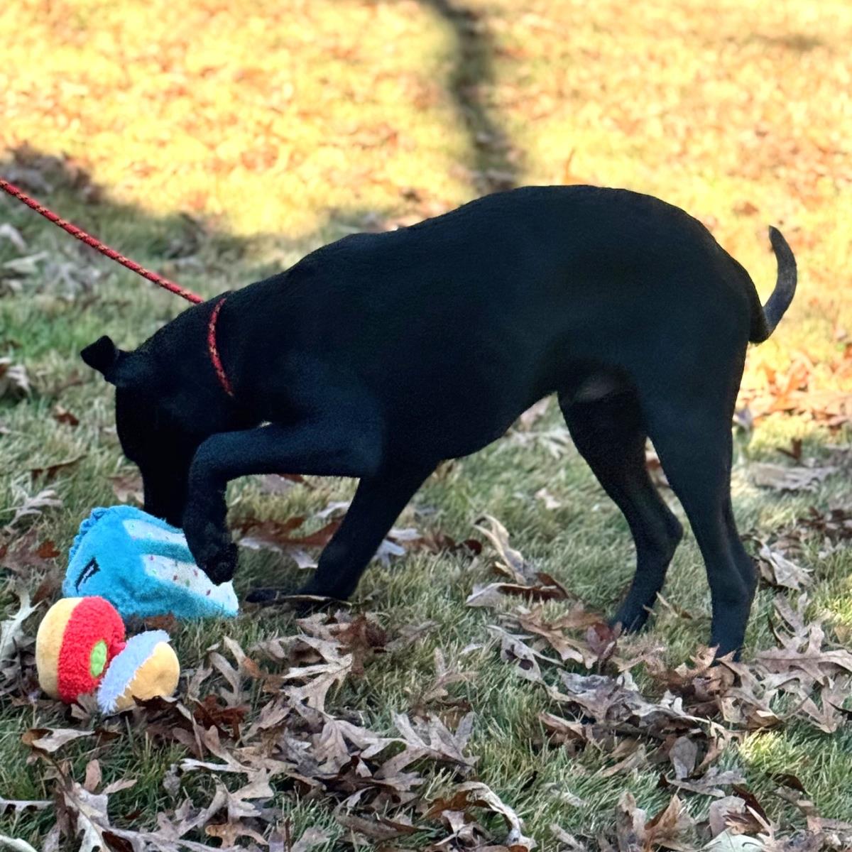 Meet our litter of terrific pups! There are six in all, and their names are Ivy, Rose, Toby, Nala, Beau, and Sally! Catahoula/Lab mixes. They’re 4 months old, weigh about 22 pounds and will probably grow to around 45 to 50 pounds or more. A delightful group, they are friendly, love affection and seek play time when they can. (They love toys!) They’re quite good on leash for their age, and they’re quick to learn. Puppies Delight! (posted 12/26/25, ME)