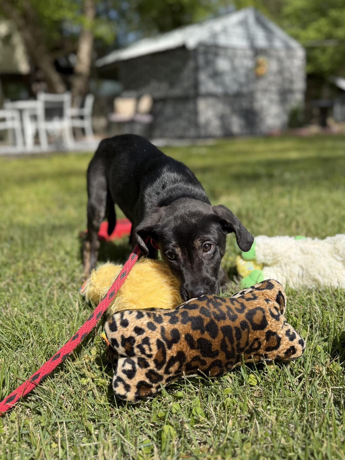 His name is Trooper, and boy he’s a trooper for sure. A 3-month-old Lab mix weighing 15 pounds, he’ll mature to about 50. He’s very energetic, and loves to play, jump, and run. He’s treat motivated and is dog and food friendly. He can be a bit cautious and shy when around new people, but he quickly warms up. His mom and siblings died of parvo, but Trooper lived. Maybe that’s because we bottle fed him from the age of 2 weeks. Now you know why we call him Trooper! (posted 4/14/26, ME)