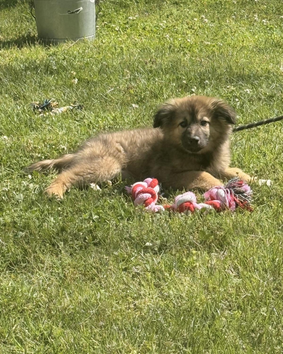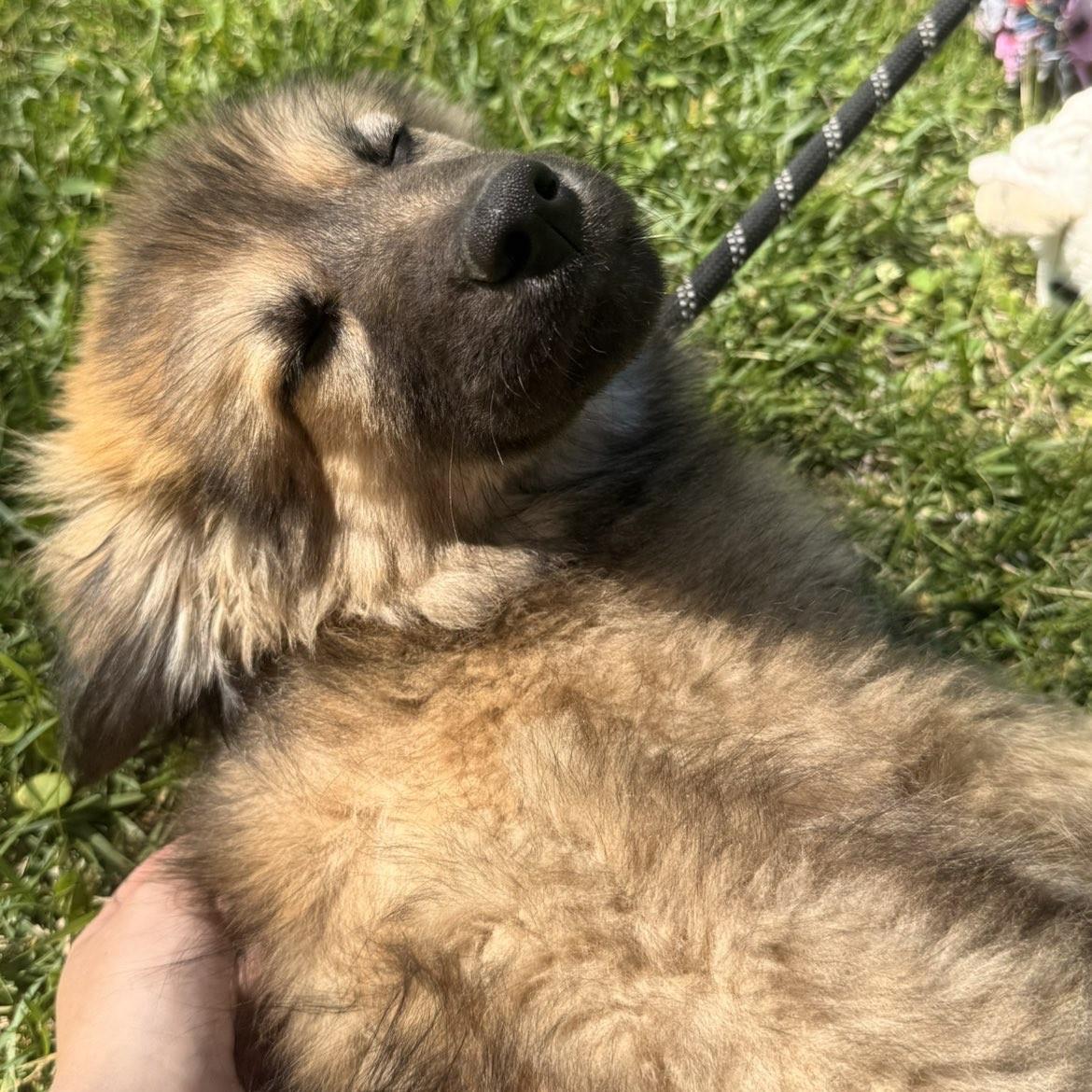 Some litters are small, some are large, really large! Like this one. Their names are Hart, Cupid, Valentino, Amis, Eros, Amore, Valentina, Valerie, and Dove! You counted right! There are nine of these three-month-old Great Pyr/Shepherd mixes who presently weigh 10 pounds and will grow to 60 or more. Aside from how many there are, what are their personalities? They’re super sweet, very loving, with medium energy. They love to run and play, especially with toys. These fluffy babies are dog friendly and food friendly, too! A delightful litter of nine! (posted 4/16/26, ME) Adoption Fee: $395.00-- covers microchip, worming, all vaccines, monthly heart worm preventative, monthly tick/flea preventative, spaying/neutering, health certificate, and complete medical records. Transport Fee: $160.00-- We consider the transport to be of great importance and, as such, take particular care of the dogs during the trip. We make every effort to arrive with healthy and minimally stressed dogs. **It is rare that we know with certainty the ages or mixes that make up our dogs, but we do our best to be as accurate as possible based upon our experience. **