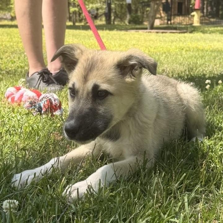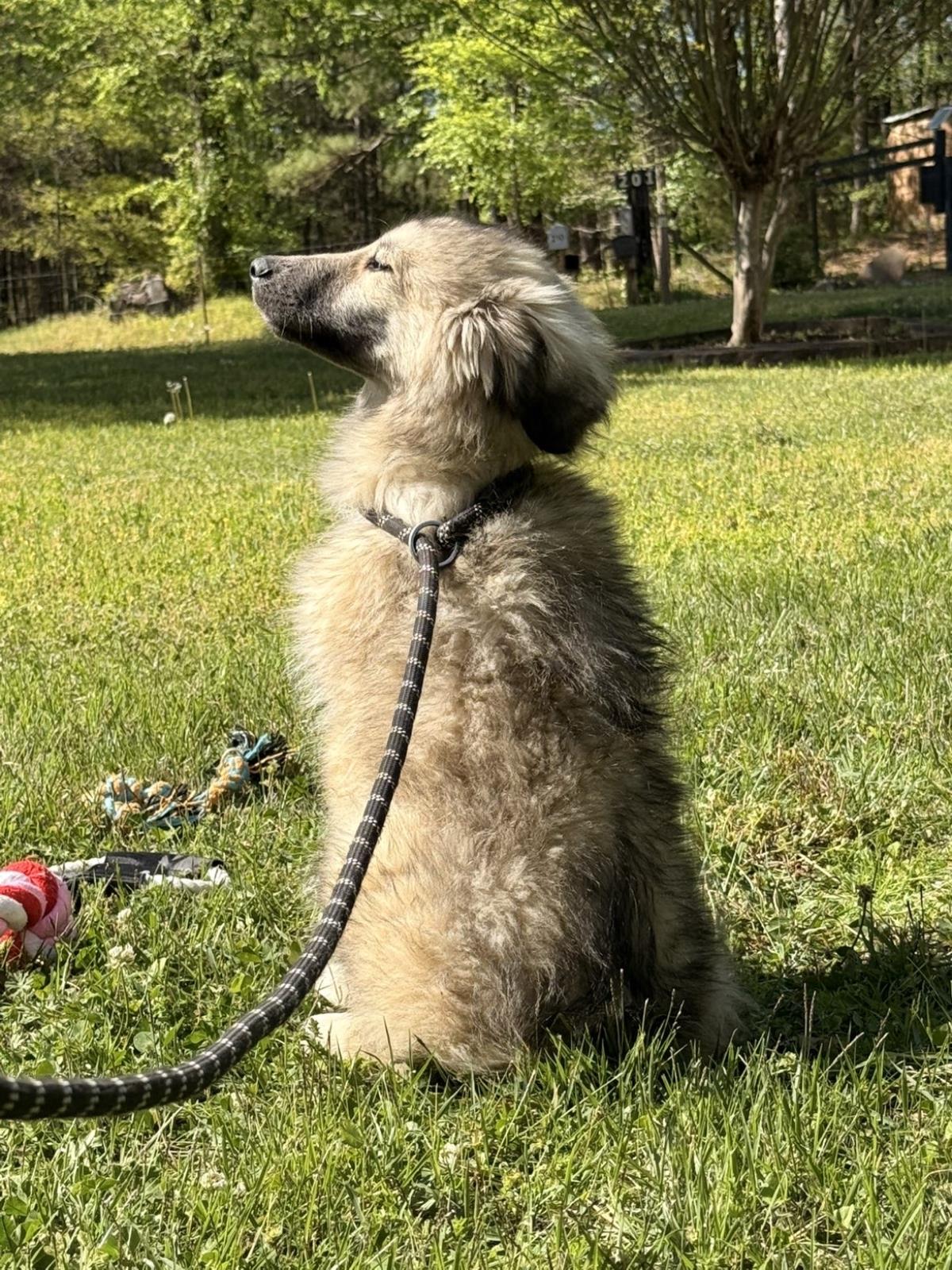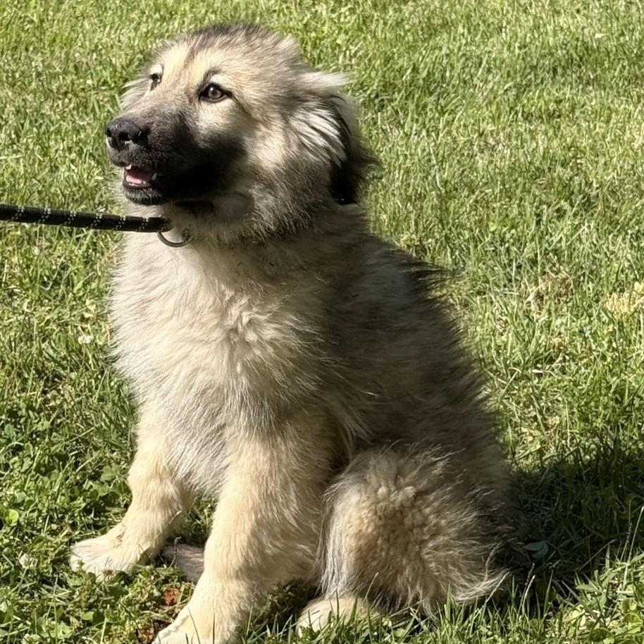 Some litters are small, some are large, really large! Like this one. Their names are Hart, Cupid, Valentino, Amis, Eros, Amore, Valentina, Valerie, and Dove! You counted right! There are nine of these three-month-old Great Pyr/Shepherd mixes who presently weigh 10 pounds and will grow to 60 or more. Aside from how many there are, what are their personalities? They’re super sweet, very loving, with medium energy. They love to run and play, especially with toys. These fluffy babies are dog friendly and food friendly, too! A delightful litter of nine! (posted 4/16/26, ME) Adoption Fee: $395.00-- covers microchip, worming, all vaccines, monthly heart worm preventative, monthly tick/flea preventative, spaying/neutering, health certificate, and complete medical records. Transport Fee: $160.00-- We consider the transport to be of great importance and, as such, take particular care of the dogs during the trip. We make every effort to arrive with healthy and minimally stressed dogs. **It is rare that we know with certainty the ages or mixes that make up our dogs, but we do our best to be as accurate as possible based upon our experience. **