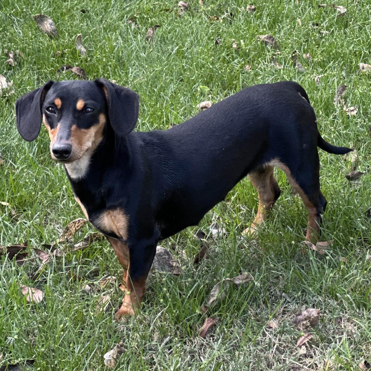 This is Zeri, a 1-year-old, 17-pound Dachshund mix. Zeri came into rescue because her family moved and left her alone in the yard to fend for herself. What? You read it right. Her family left her behind when they moved. Oh, my goodness! Well, Zeri is with us now, and we watch as she happily plays with other dogs. She gets along with her foster’s cat, too. This is a fine little girl who deserves the kind of furever family that won’t drive off leaving her behind in a cloud of dust. Don’t you agree? (posted 11/15/25, TN)