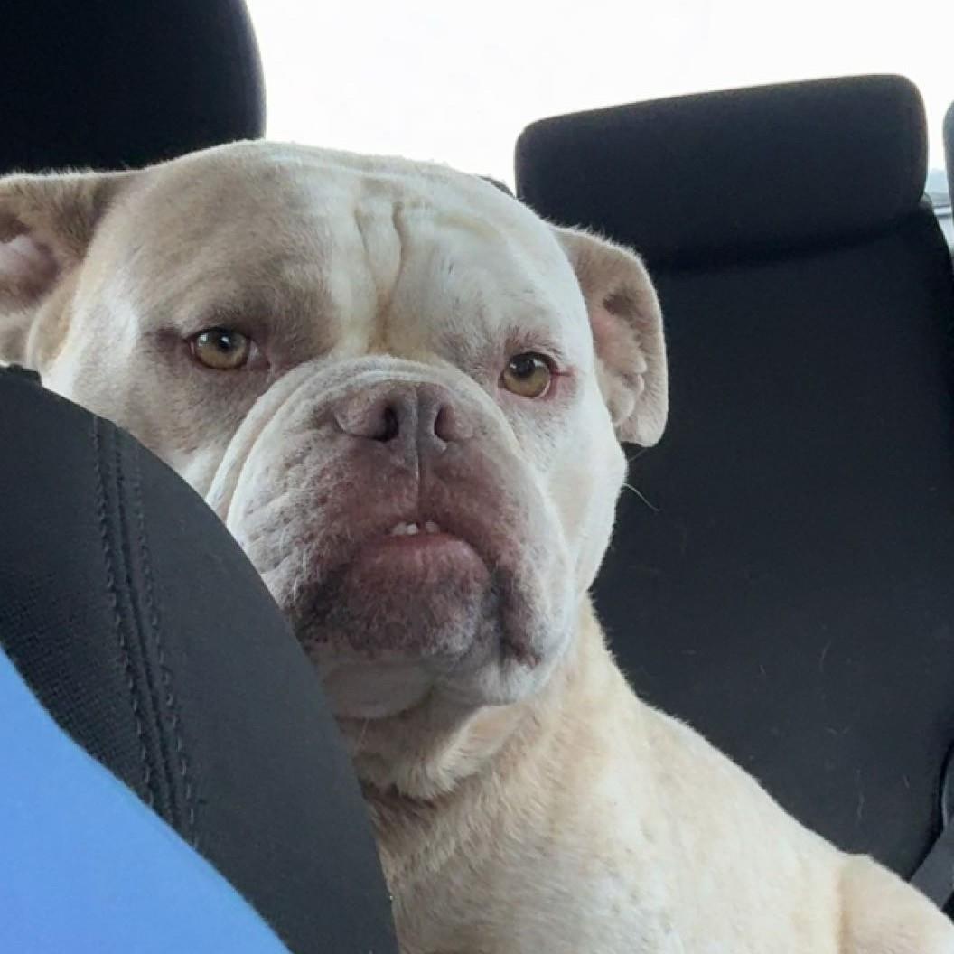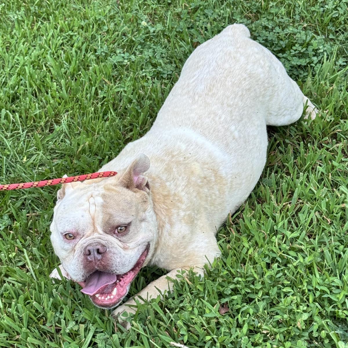 Thank Heaven for good Samaritans! Recently, one saw Zeus dropped off on the side of a highway and left behind. She picked him up and brought him to us where we treated a skin infection as well as Heartworm. He’s done well, and he’s ready for adoption by a family who won’t desert him in traffic. This boy is very affectionate, outgoing and playful, according to his foster. He’s an English Bulldog mix of about 3 years and he weighs 56 pounds. Overall? A true delight!!! (posted 8/8/25, ME)